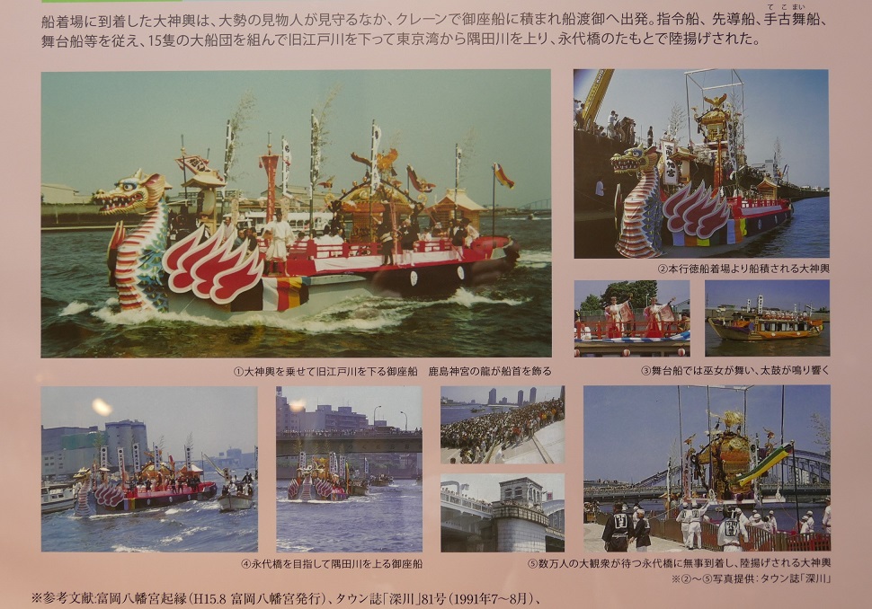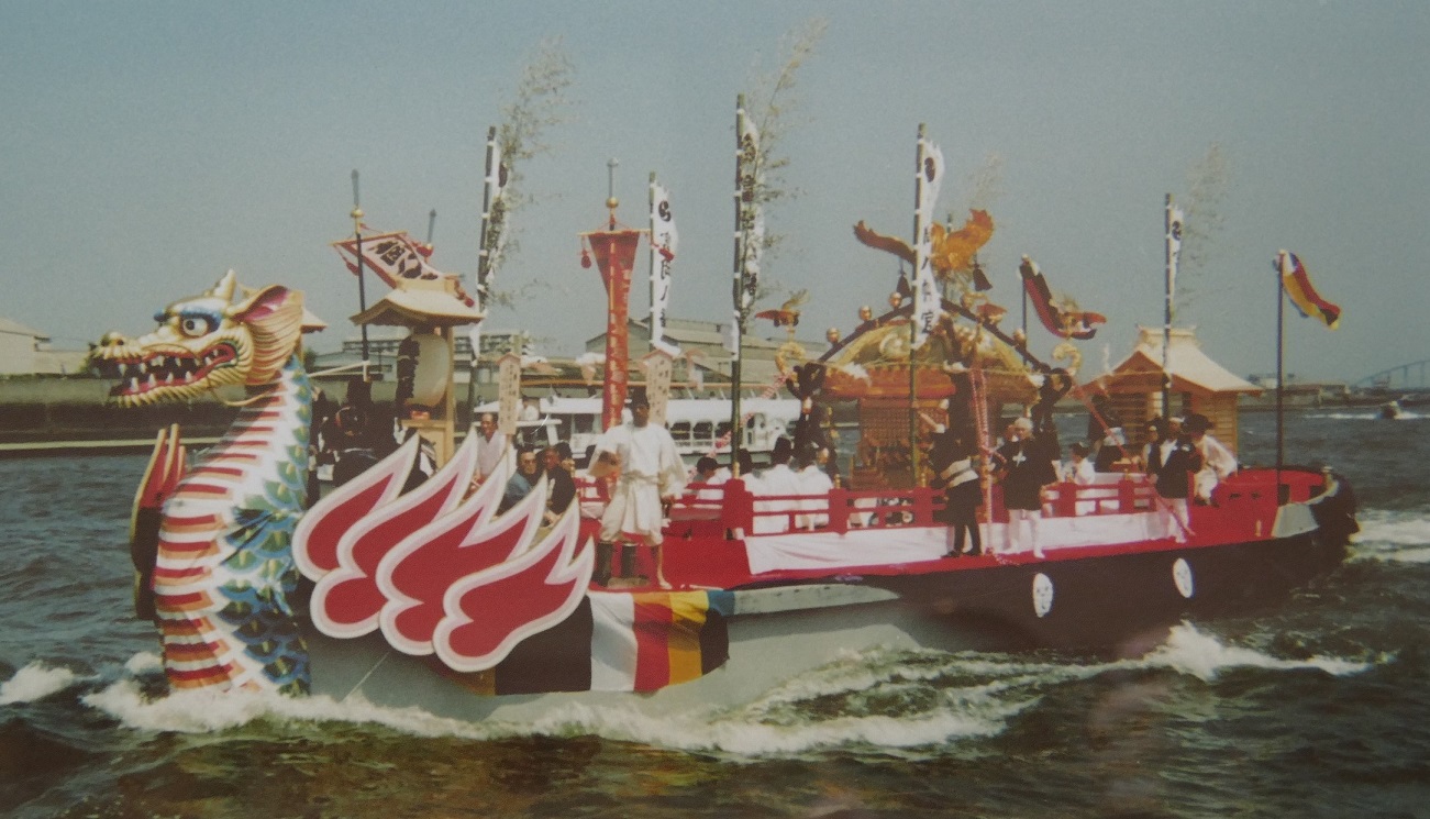 1988年(昭和63年)にはこの神輿の大修繕が行われましたが、修繕を終えて再び神社に納める際、船渡御が110年ぶりに再現されました。