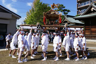 例外となるのが下妙典の獅子頭の地すりです。こちらは浦安と同じように内側を向いて獅子頭を激しく揺らします。