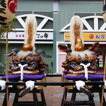 2019年の祭りでは、獅子頭・大神輿・女神輿・子ども神輿と山車が順番に駅前ロータリーをまわりました。