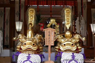 そして、口を開けている(阿行)のが獅子で向かって右、角があり口を閉じている(吽形)のが狛犬で向かって左となりました。